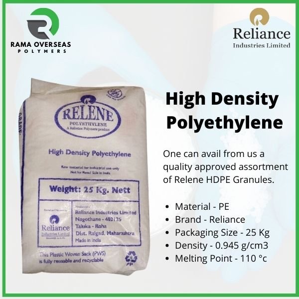 Relene HDPE Granules are high-quality high-density polyethylene materials known for their excellent strength-to-density ratio and durability. They offer superior chemical resistance, good impact strength, and excellent moisture barrier properties, making them reliable for demanding applications. These granules provide consistent processing performance with good melt flow and dimensional stability.